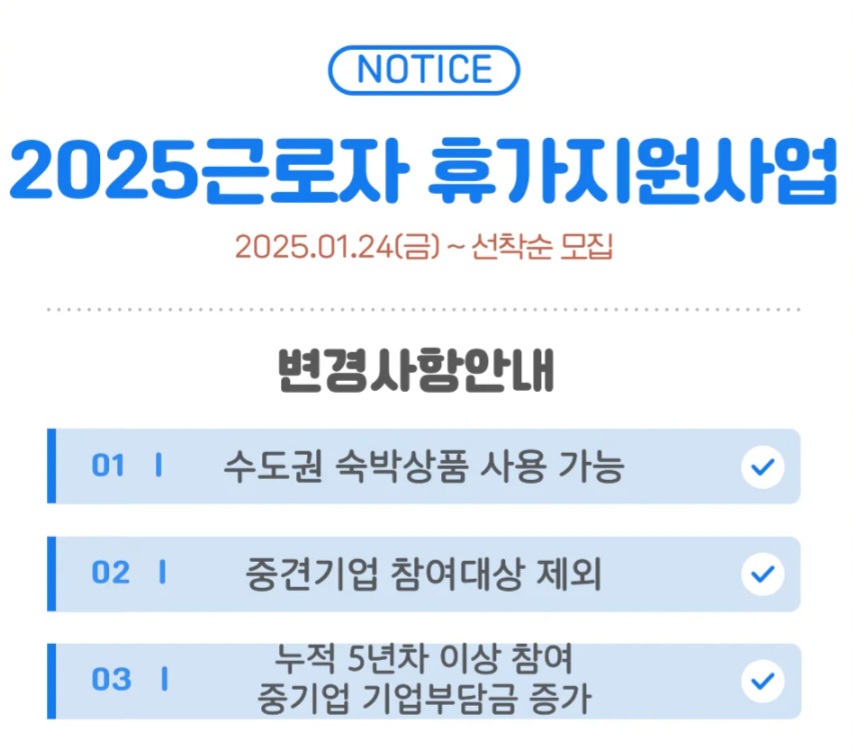 ✔ 신청: 2025년 1월 24일부터 공식 누리집(vacation.visitkorea.or.kr)을 통해 기업 단위로 접수