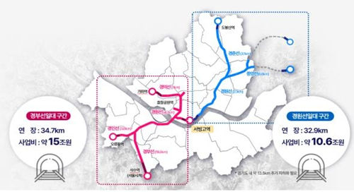 지하화 대상 구간: 경부선 일대 34.7km, 경원선 일대 32.9km 등 총 67.6km