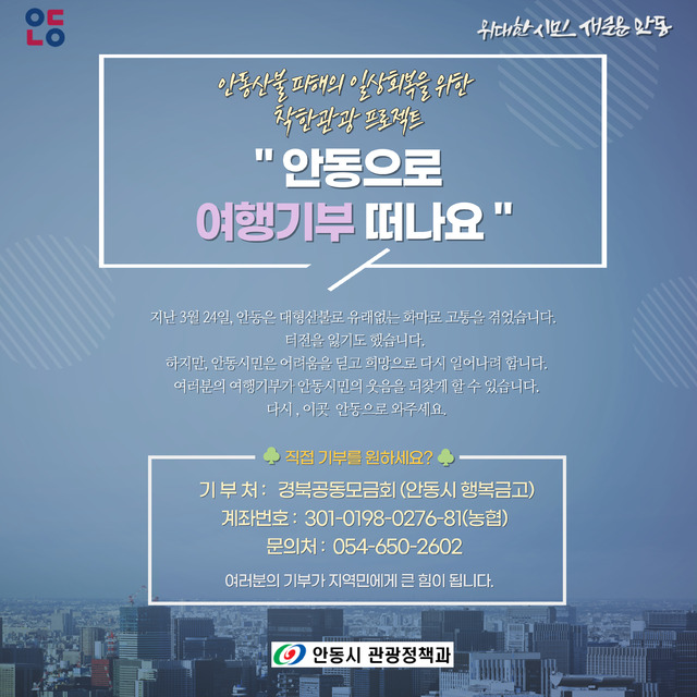 안동시는 '산불 피해 극복! 특별한 여행 캠페인'을 추진 중이에요!