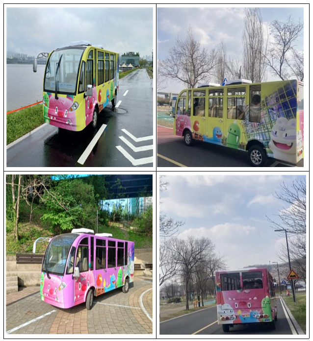 운행구간: 망원나들목 ~ 거울분수 ~ 수상레포츠센터 ~ BTS숲 ~ 물놀이장 ~ 젊음의광장 ~ 난지캠핑장 (왕복 6.2km)